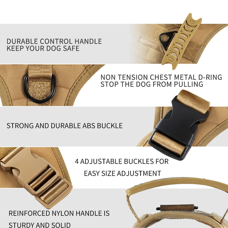 Fabriqué en nylon militaire 1050D avec coutures double-renforcées, ce harnais est conçu pour durer plusieurs années même avec un usage quotidien intensif.